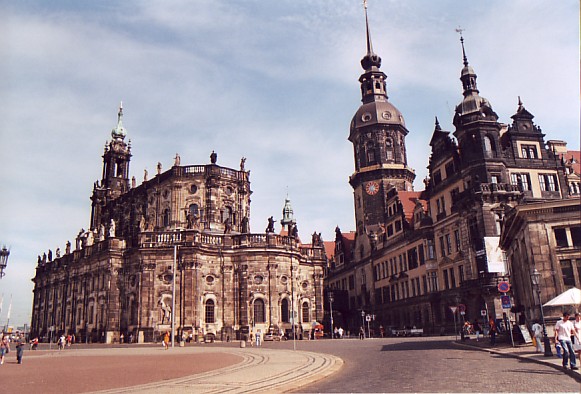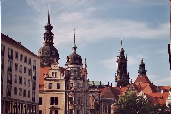 Dresde est une ville de 500.000 habitants, la deuxième de l’ex Allemagne de l’est après Berlin. On la surnomme la Florence de l’Elbe. C’est effectivement une ville d’art et nous sommes très surpris de la magnificence des bâtiments dont regorge le centre ville. La ville fut donc une grande capitale artistique et culturelle au 18ème et 19ème siècle, mais connu « l’apocalypse » en février 1945, lorsque les alliés la bombardèrent complètement (en une nuit), tuant des dizaines de milliers de personnes. La ville fut reconstruite : les monuments, méticuleusement reconstitués, et les immeubles d’habitation, dans le style pur jus RDA. A l’heure actuelle, Dresde se débarbouille, c’est le grand nettoyage post-soviétique. Il reste encore du travail jusqu’à 2006, où la ville fêtera son 800ème anniversaire et son retour dans la cour des grandes capitales culturelles est européennes (Prague, Cracovie, Budapest,…).