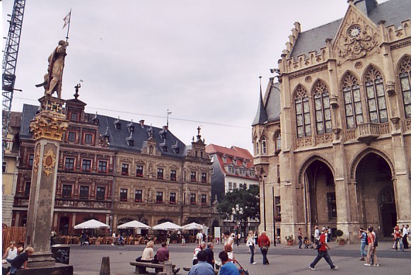 Après s’être installé, nous partons pour une petite ballade en ville. Celle-ci se révèle tout à fait intéressante. La ville présente de belles façades, de nombreuses églises et semble dynamique. A noter, l’intéressant pont des Epiciers, qui est en fait un pont habité, avec des maisons construites dessus, le seul de ce type en Europe du Nord. Nous regretterons de ne passer à Erfurt qu’une courte soirée, la ville méritait sans doute mieux. Repas et soirée à l’hôtel. Je profite de l’agréable hammam, sauna et jacuzzi mis à disposition de la clientèle (où je suis d’ailleurs seul et tranquille).