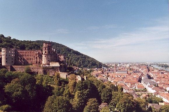 Nous prenons la direction de Heidelberg, à une vingtaine de kms de Mannheim. Haut lieu du romantisme allemand, c’est bien sûr son château qui nous intéresse le plus. Dominant la vielle ville et la vallée du Neckar, il a beaucoup de caractère. Là aussi, les visiteurs sont très nombreux. L’entrée est assez chère et permet de visiter les extérieurs. Si l’on souhaite visiter les bâtiments, il faut s’inscrire et payer une visite guidée, ce que nous ne ferons pas. Une grande partie des corps de bâtiments est en ruine, ce qui renforce le romantisme de l’ensemble. De la terrasse du château et des jardins, on a une très belle vue sur la ville et le fleuve.