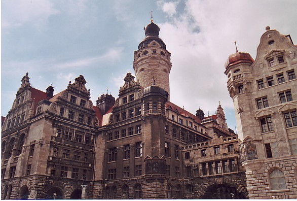 Réveil vers 9h00 et départ à 10h00 pour Leipzig, distant de Dresde d’une centaine de km, avalés en une heure. Leipzig, ville de 500.000 habitants, est d’une physionomie très différente de Dresde. Elle semble plus vivante, plus active et plus industrieuse. Son patrimoine architectural est plus modeste mais le centre est en pleine rénovation : les chantiers sont partout présents. C’est une ville intellectuelle et universitaire. Nous allons principalement nous balader dans toutes les artères du centre ville. Sont à voir particulièrement l’ancien et le nouvel hôtel de ville. Nous déjeunons à la cafeteria d’un grand magasin, toujours bien pratique, puis allons visiter la gare, une des plus grandes de l’est, et qui a fière allure après sa rénovation totale.