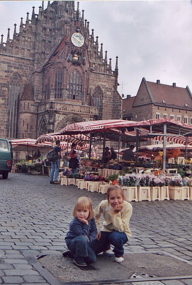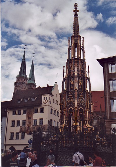 Nous partons après l’exposition vers le centre de la ville. C’est une ville fortifiée depuis le 15ème siècle et les fortifications n’ont pas trop soufferts pendant la guerre. Les bâtiments à l’intérieur de la ville ont par contre été souvent détruits (et reconstruits). On peut voir la belle place du marché, puis toutes les artères commerçantes aux alentours. Nous déjeunons dans un Nordsee. Nous nous rendons ensuite au nouveau musée d’art contemporain et de design, avec une architecture très intéressante puisque la façade est totalement vitrée et on peut donc voir de l’extérieur les collections (et les visiteurs !). Nous décidons de ne pas visiter le musée national germanique, immense, la plus importante collection d’objet d’art en Allemagne : nous commençons à fatiguer après ces trois semaines de voyage. Avec regret, mais il faut faire des concessions aussi pour les filles. Nous partons enfin vers le château qui domine la ville et les nombreuses églises. Nuremberg, qui a 500.000 habitants, n’est pas la ville qui nous aura le plus plu mais elle présente cependant une ambiance agréable et mérite de s’y arrêter. Vers 17h30, nous rentrons à l’hôtel, sans ambition d’en repartir pour la soirée, nous aspirons à un peu de repos et de tranquillité (toujours facile à dire avec les filles).