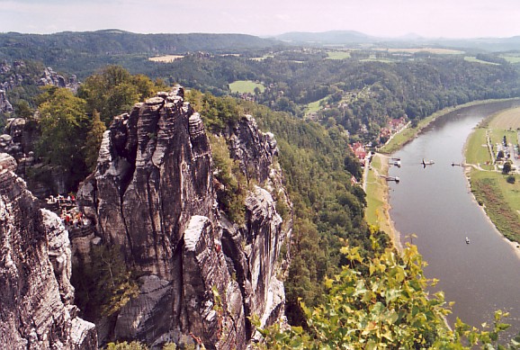 Lever à 9h00 pour un départ à 10h00. La journée sera consacrée à la visite de la Suisse saxonne, région située à l’est de Dresde. Sortie de Dresde en longeant l’Elbe et de jolies rues avec des maisons très cossues, puis nous prenons la direction du Bastei, par la rive droite de l’Elbe. Le Bastei est un site spectaculaire de pitons rocheux qui dominent l’Elbe à 200 mètres de hauteur. Il y a beaucoup de monde sur ce site mais le panorama sur l’Elbe est très impressionnant. Cela me fait un peu penser à la courbe du Danube, au nord de Budapest. Nous prenons ensuite la direction de l’est vers la petite ville de Bad Schandau, où nous traversons le fleuve, puis remontons vers l’ouest jusqu’à la petite ville de Königstein, dominée par une forteresse.