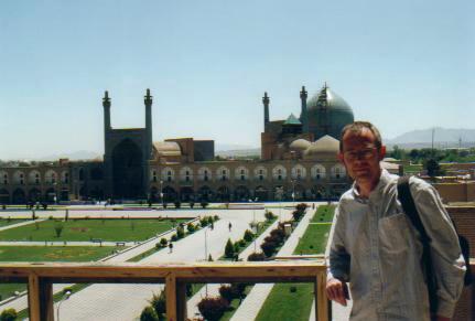 Alors que je me suis arrêté devant l’entrée de la mosquée Lotfollâh, je suis accosté par trois jeunes adultes iraniens, qui me demandent rapidement si je veux bien discuter avec eux. J’accepte, bien évidemment et nous marchons donc ensemble. Après les questions d’usage sur mon origine, le but de mon voyage, mon parcours, ils m’invitent à venir partager avec eux un thé, à la maison du thé qui se trouve dans le portail du bazar. Nous nous installons à la terrasse, qui permet de jouir d’une magnifique vue sur l’ensemble de la place. Nous entamons donc rapidement une conversation plus fouillée sur la situation politique, économique et sociale de leur pays. Je suis alors très surpris de la liberté de ton dont ils usent. Ils parlent sans discrétion, dans cet endroit très fréquenté, de leur pays, de leurs attentes, de leurs frustrations. Bien sûr, je reste personnellement assez réservé sur mes paroles, n’ayant de toute manière aucun jugement à porter sur un pays que je connaît encore si peu.
