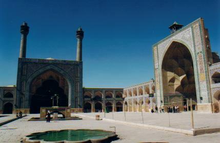 Vers 11h00, nous quittons Yadz pour Ispahan, à environ 300 kilomètres. Sur la route, empruntée par de nombreux camions, toujours des caravansérails. Dès que nous quittons les villes, on retrouve ce paysage de désert et de montagnes, caractéristique du plateau central iranien. Nous stoppons dans une petite ville, à mi-chemin, appelée Nâim. Elle est connue pour sa mosquée du vendredi, ancienne et bien conservée.